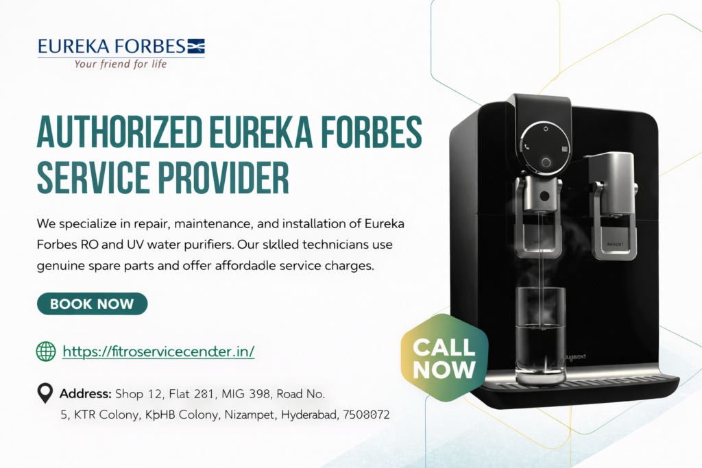 Looking for trusted Eureka Forbes RO service in Hyderabad? FIT RO Service Centre provides expert Eureka Forbes RO repair, installation, maintenance, and filter replacement services across Hyderabad, Secunderabad and nearby areas with same-day doorstep support.